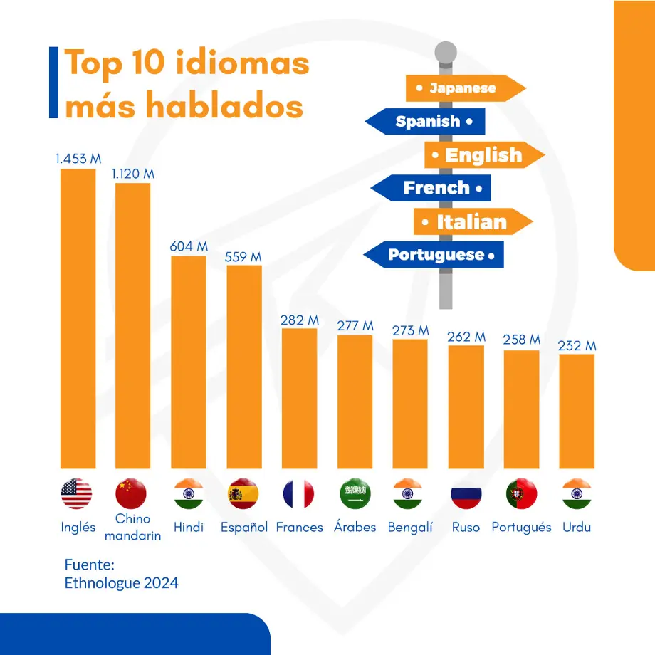 ¿Sabes cuáles son los 10 idiomas que más se hablan en el mundo?: Ser bilingüe mejora tu futuro profesional.
