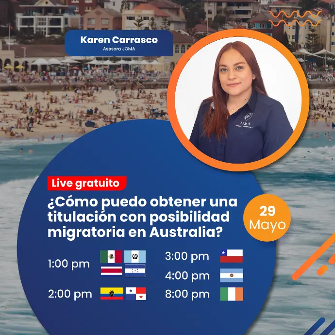 Únete a nuestro live y conoce las opciones educativas que te brindan la oportunidad de emigrar a Australia, así como los requisitos y procesos necesarios.