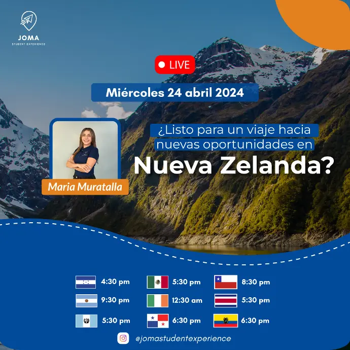 ¡Únete a nuestro emocionante EN VIVO con la experta en migración internacional, Majo Muratalla, y prepárate para embarcarte en una aventura hacia grandes oportunidades en Nueva Zelanda!