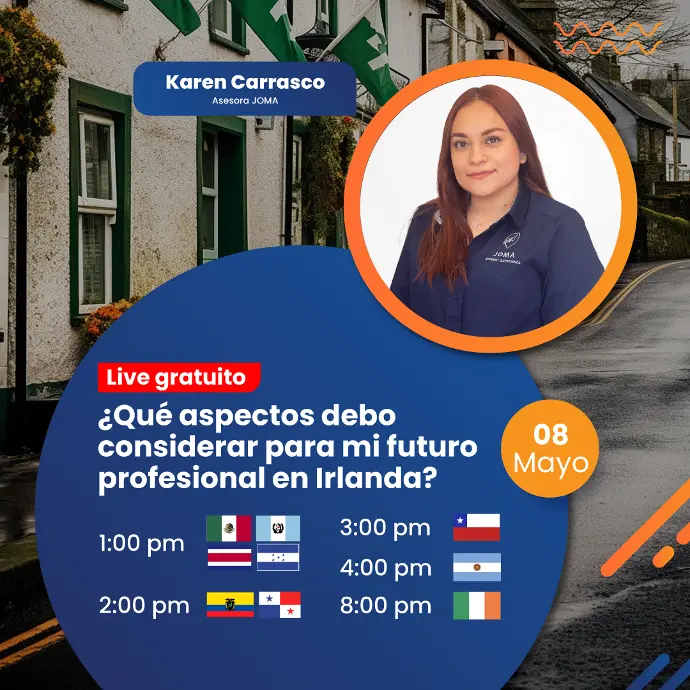 Acompáñanos en nuestro EN VIVO con la experta Karen Carrasco. Hablaremos sobre todo lo que debes saber antes de iniciar tu aventura para estudiar y trabajar en Irlanda. Igualmente, responderemos tus preguntas en vivo para guiarte en tu camino internacional.